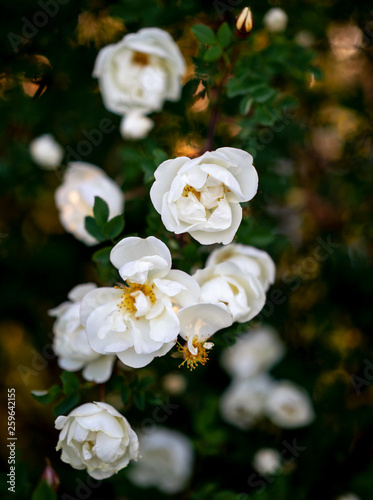 © Olga Y., Fototapeta premium Blooming wild rose Bush in the spring.