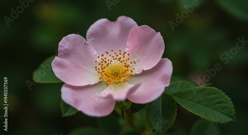 © Hasan, Obraz premium Blooming Wild Rose Flower Closeup with Delicate Pink Petals