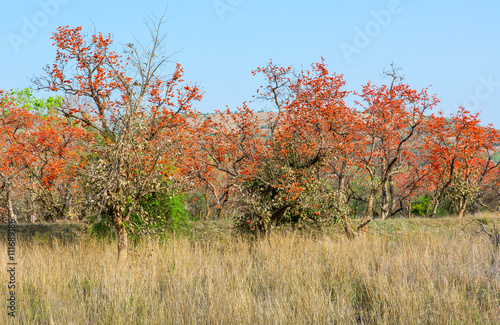 Fototapeta premium Blooms of Butea monosperma in Ranthambhore National Park, India