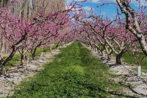 © zkcristian, Fototapeta premium Bloosom fruit trees in the spring. (cherry trees field)