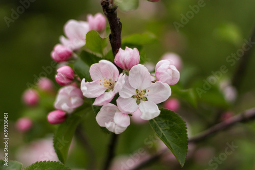Obraz premium Blossom apple over nature background. Beautiful blooming apple tree branch at...