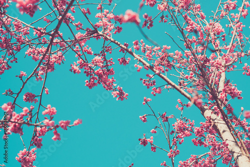 © RAYBON, Obraz premium blossom apple trees on background sky