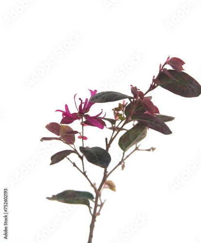 © Dana, Obraz premium Blossom of Loropetalum chinense rubrum, branch with flower with pink - purple, magenta petals, on white background