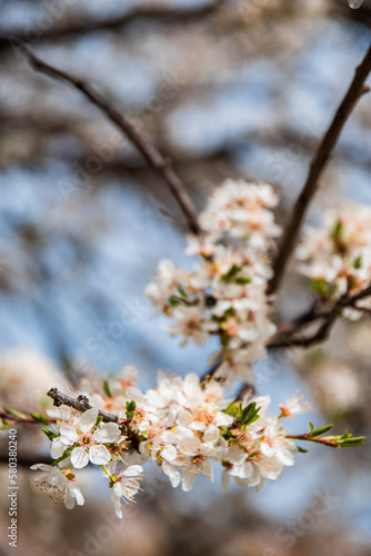 Fototapeta premium Blossom tree over nature background, Spring flowers, Spring Background