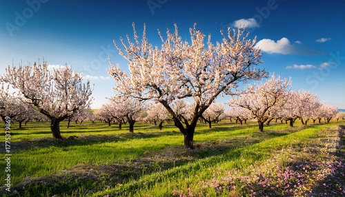 Fototapeta premium blossoming almond trees in a field