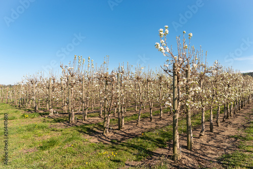Obraz premium Blossoming apple orchard in spring. Germany, Europe. Beauty world