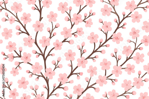 Fototapeta premium Blossoming cherry blossoms on a white background create a serene and elegant...