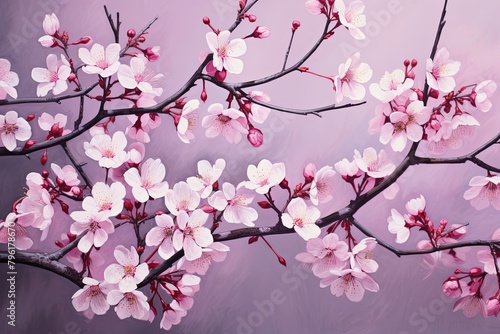 © Michael, Obraz premium Blossoming Cherry Tree Gradients: Delicate Petal Array Photography