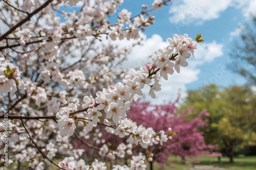 © Rizvan, Obraz premium Blossoming Cherry Tree with Gentle Blur Background
