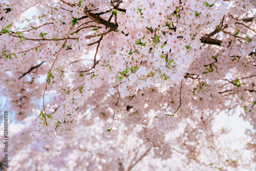 Fototapeta premium Blossoming Cherry Tree With Many Delicate Flowers