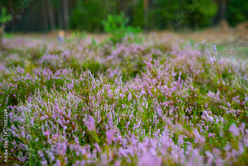 © Andrzej Wilusz, Naklejka premium Blossoming Heather on the meadow. Forest area
