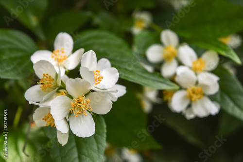 © Mykola, Fototapeta premium Blossoming jasmine close-up.
