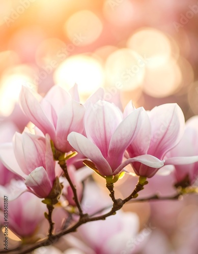 © Burhan, Fototapeta premium Blossoming magnolia in sunlight