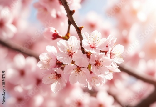 Fototapeta premium Blossoming pink cherry blossoms on a tree branch in springtime