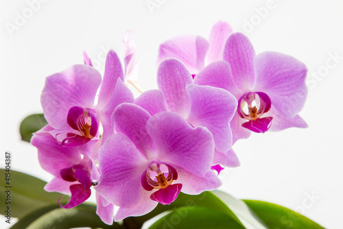Fototapeta premium Blossoming pink orchid flower on the white background