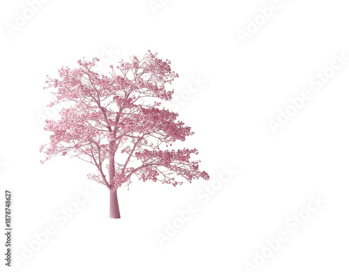 © Wawan, Obraz premium Blossoming pink tree silhouetted on white background with delicate branches