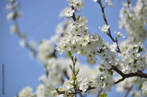 Obraz premium Blossoming tree at spring against blue sky