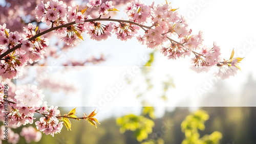 © THIBNH, Fototapeta premium Blossoming tree branches with copy space banner spring time concept 37734592 1