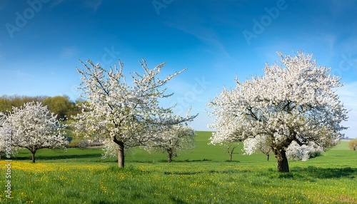 © Patti, Fototapeta premium blossoming trees in spring in rural scenery