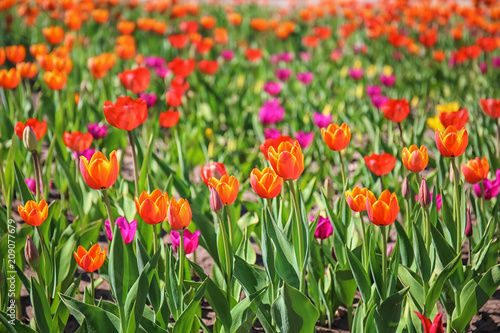 © Pixel-Shot, Fototapeta premium Blossoming tulips outdoors on sunny spring day