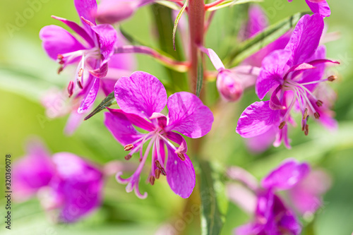 © Ekaterina Kolomeets, Obraz premium Blossoming willow-herb in a field under the summer sun.