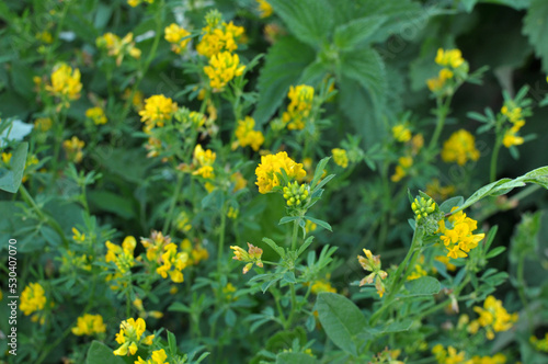 © orestligetka, Fototapeta premium Blossoms of alfalfa sickle (Medicago falcata)