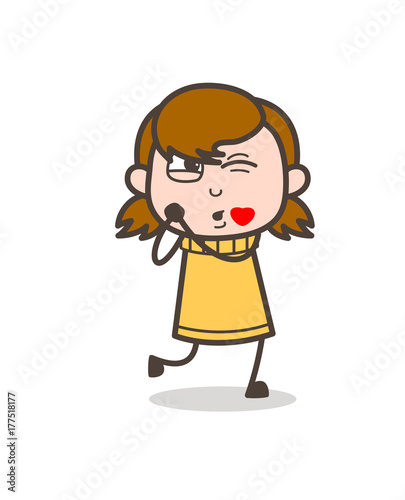 Fototapeta premium Blowing Kisses - Cute Cartoon Girl Illustration
