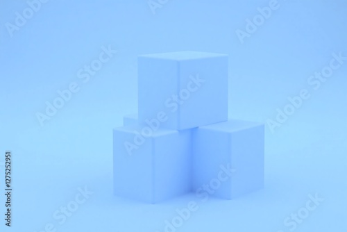 © Ease Enjoy, Obraz premium Blue abstract background three cubes triangular formation