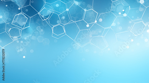 Fototapeta premium Blue Abstract Background with Hexagonal Molecular Structures and Light Effects