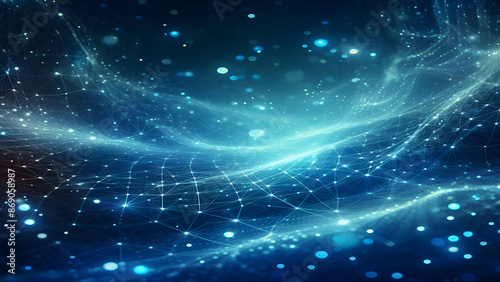 © Tanvir, Fototapeta premium Blue abstract background with network grid and particles