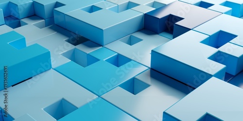 © Shawn Hempel, Fototapeta premium Blue abstract jigsaw puzzle pieces grid background, software module or business technology background concept