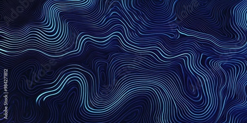 © rahwik, Obraz premium Blue abstract technology data wavy lines in holographic style