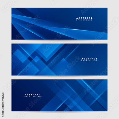 © Salman, Fototapeta premium Blue abstract vector long banner. Minimal background with arrows and copy space for text. Social media cover and web banner template