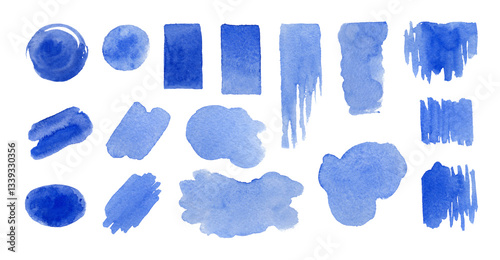 Obraz premium Blue abstract watercolor splashes set with unique shapes and colors