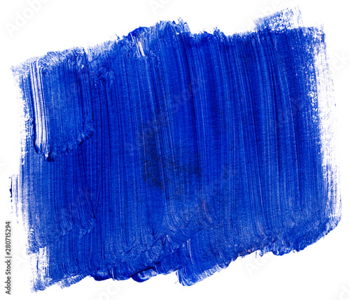 Fototapeta premium blue acrylic stain element on white background. with brush and paint texture...