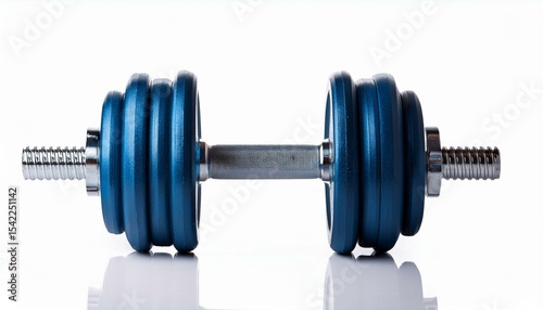 © allali, Fototapeta premium Blue adjustable dumbbell on white background