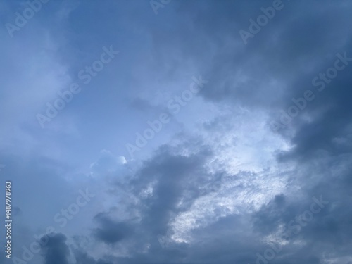 © Ilhamdh, Obraz premium blue afternoon sky with black cloudy clouds about to rain, natural sky background
