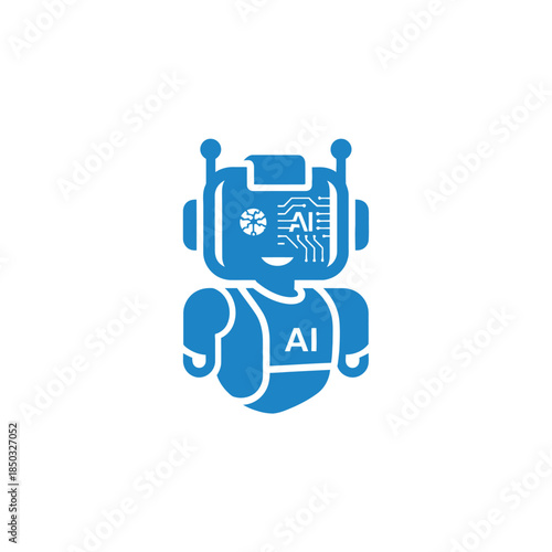 © Logo, Fototapeta premium Blue ai robot character with circuit board brain and artificial intelligence