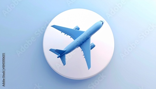 Fototapeta premium Blue Airplane Icon on White Circle Against Soft Blue Background Travel and Transportation Concept