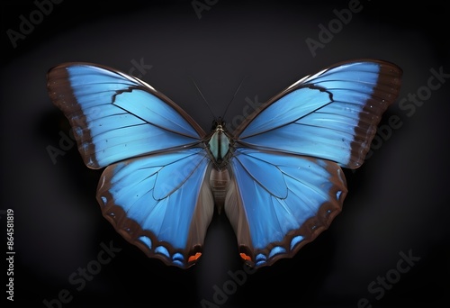 © Lied, Fototapeta premium Blue and black morpho peleides species butterfly isolated macro on black dark background hd