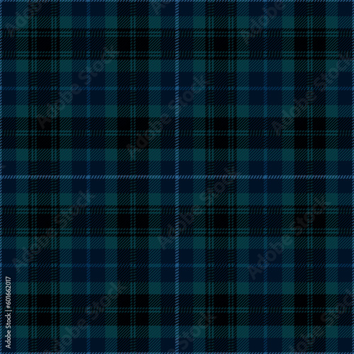 © mushan, Fototapeta premium Blue and black tartan plaid. Scottish pattern fabric swatch close-up.