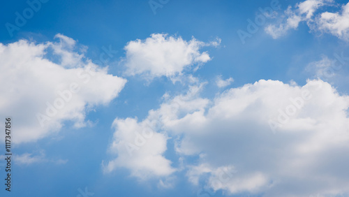 Fototapeta premium Blue and cloudy clear sky background. White fluffy cloud in nature cloudscape...