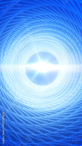 Fototapeta premium Blue and cyan swirling vortex spiral with luminous center, abstract motion...
