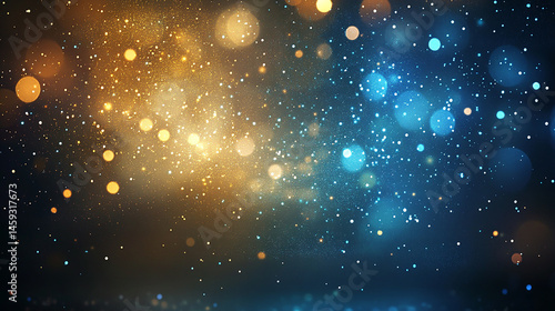Fototapeta premium Blue and Gold Bokeh Lights with Sparkles