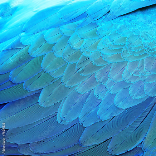© panuruangjan, Fototapeta premium Blue and Gold Macaw feathers