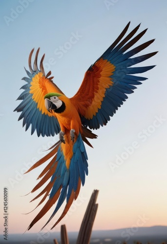 © De, Obraz premium Blue and Gold Macaw in Flight Stunning Bird Photography