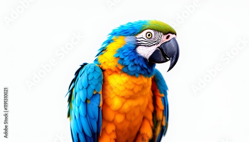 © goesti, Fototapeta premium Blue and Gold Macaw Portrait Against White Background