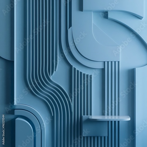 © Kartik, Obraz premium Blue and gray abstract background from curved lines of geometric shapes minimalistic design pattern