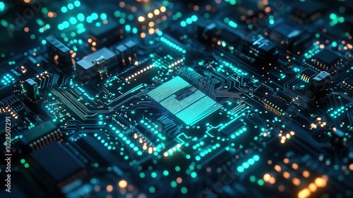 Obraz premium Blue and green abstract electronic