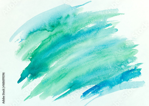 Obraz premium blue and green watercolor brush stroke abstract hand painted background